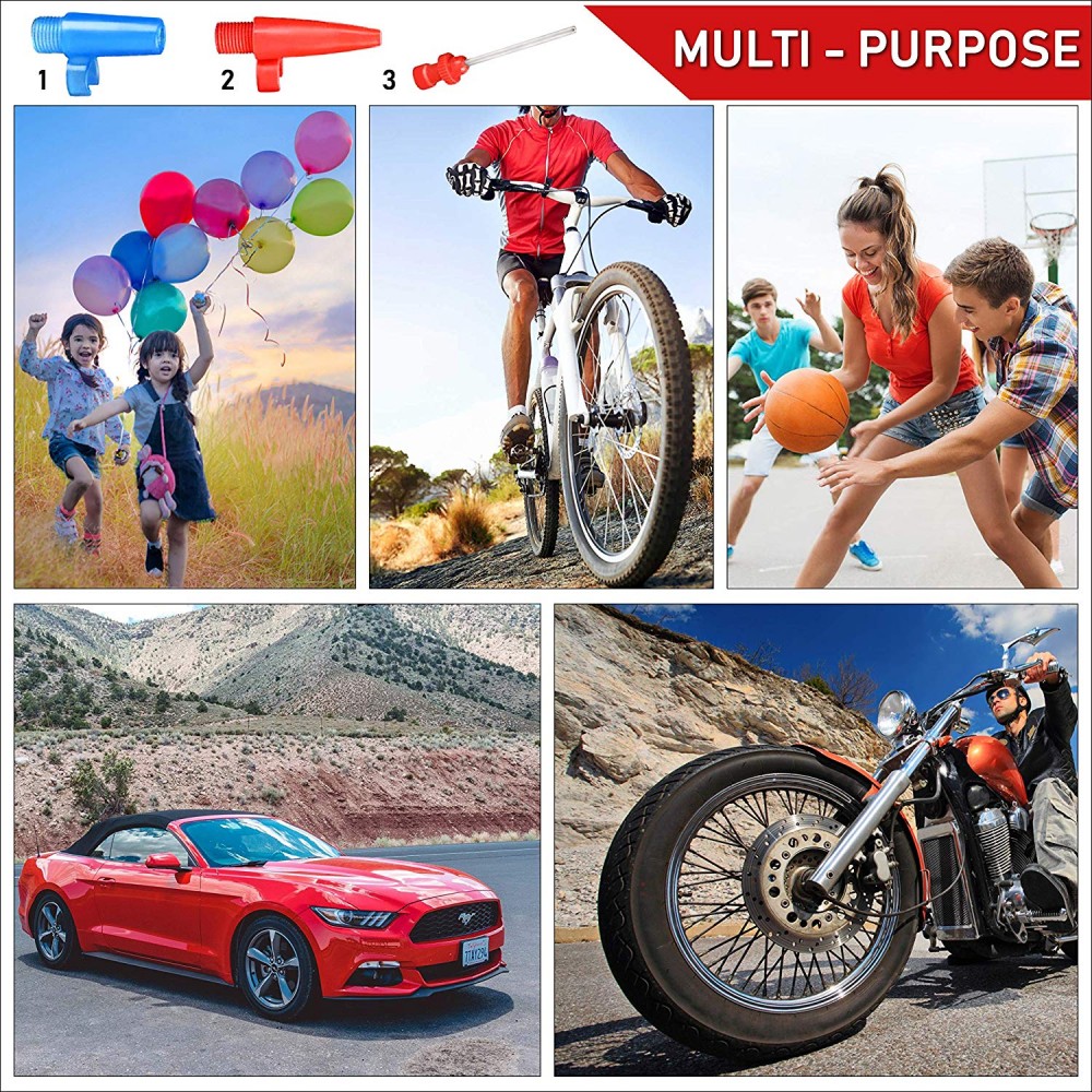 ▪️ 3 ADDITIONAL NOZZLES - It’s easy for you to inflate tire of cars, bicycles, motorcycles, suv, basketballs and also sport equipments and other inflatables..